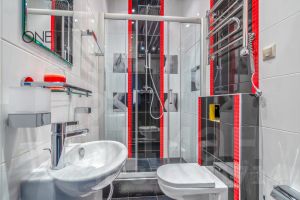 Площадь квартиры составляет 74.3 м². В квартире удобная планировка, которая включает: кухню-гостиную (32,6 кв.м.), мастер-спальню (15,2 кв.м.), два полноценных сан узла, гардеробную и лоджию.