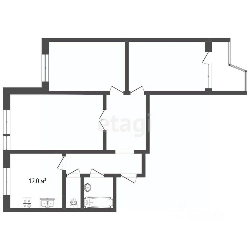 Квартира просторная. Общая площадь 72,4 м2. Площадь комнат 18,6 / 14,5 / 14 м2. Кухня 11 м2.