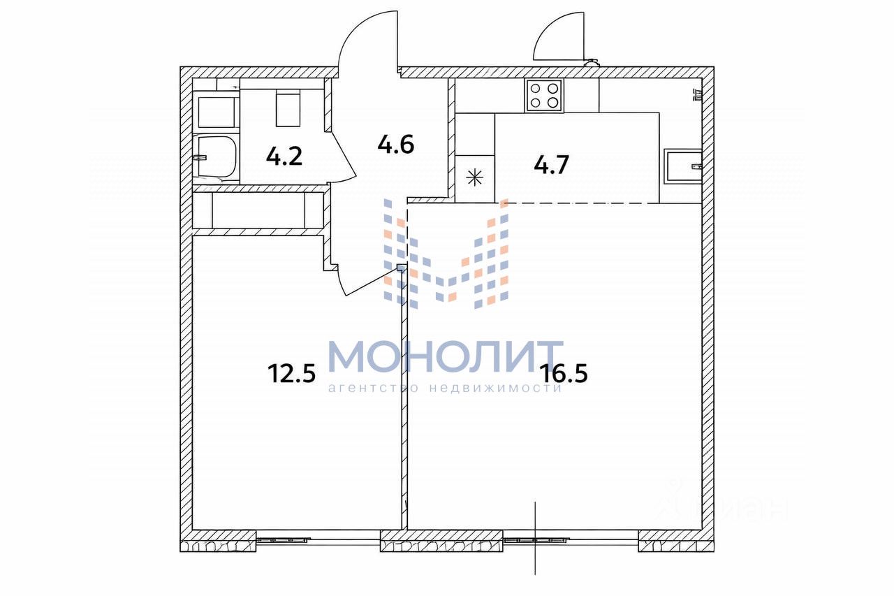 Площадь: 42.5 кв.м.