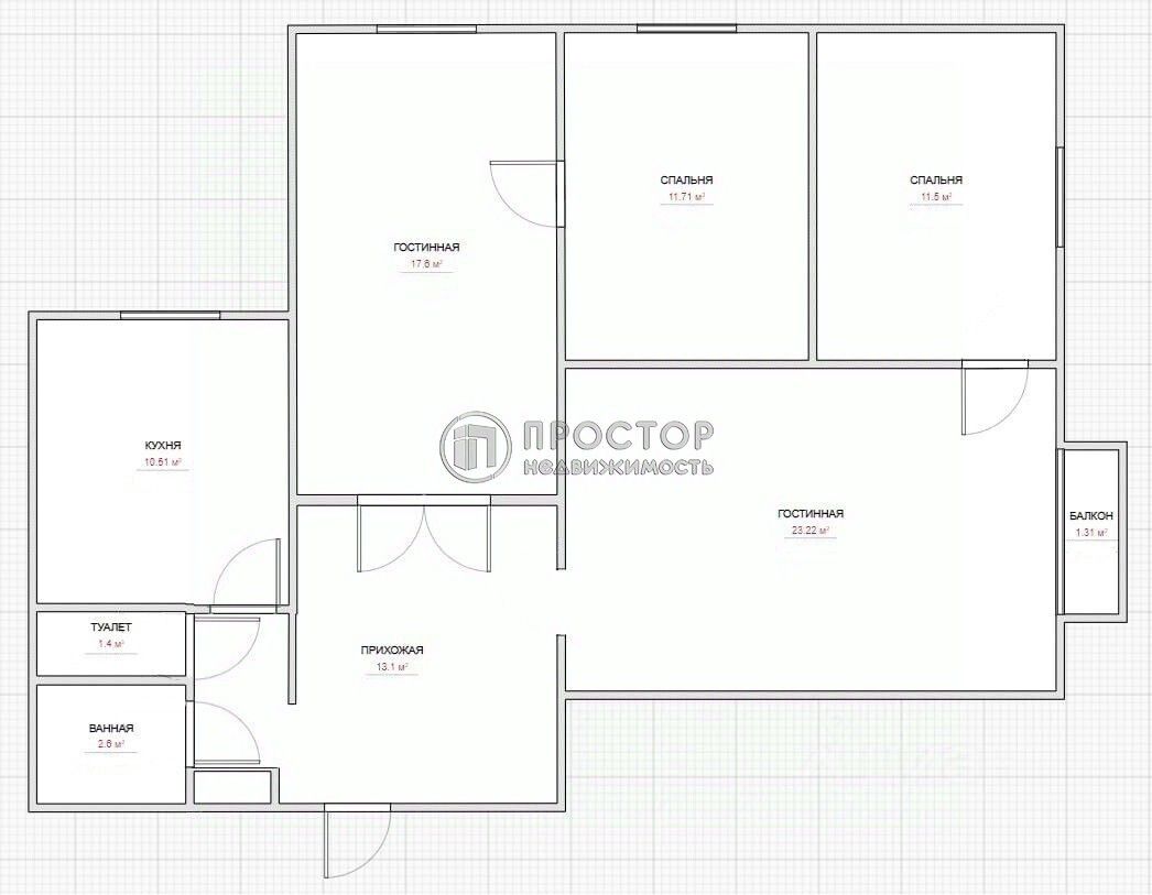- Площадь и планировка: общая площадь — 92,6 кв. м, жилая — 64 кв. м. Комнаты изолированы, что обеспечивает комфорт и уединение. Площадь комнат: 17,6 + 11,7 + 11,5 + 23,2 кв. м.