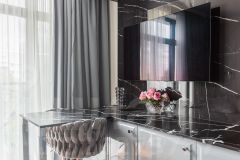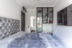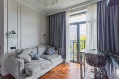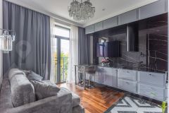 В квартире выполнен дизайнерский ремонт в стиле арт-деко. Красивые высокие двери, много зеркал и встроенных элементов. В квартире есть две 2 спальни с полноценными кроватями (размеры: 160*220 и 140*210), со встроенными шкафами и 2 санузла (1 санузел с душевой и 2 санузел с итальянской ванной полноразмерной), что удобно для большой семьи, а также большая гардеробная отдельно стоящая и в коридоре вместительные встроенные шкафы для навески сезонной одежды, полки выдвижные для обуви, сумок и мелких вещей. Окна выходят на долину реки Сетунь, обеспечивая хорошее естественное освещение. Приятный бонус — высота потолков 3 метра, что придаёт ощущение простора и свободы.