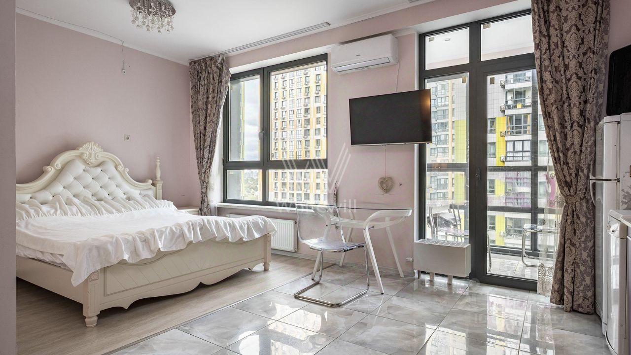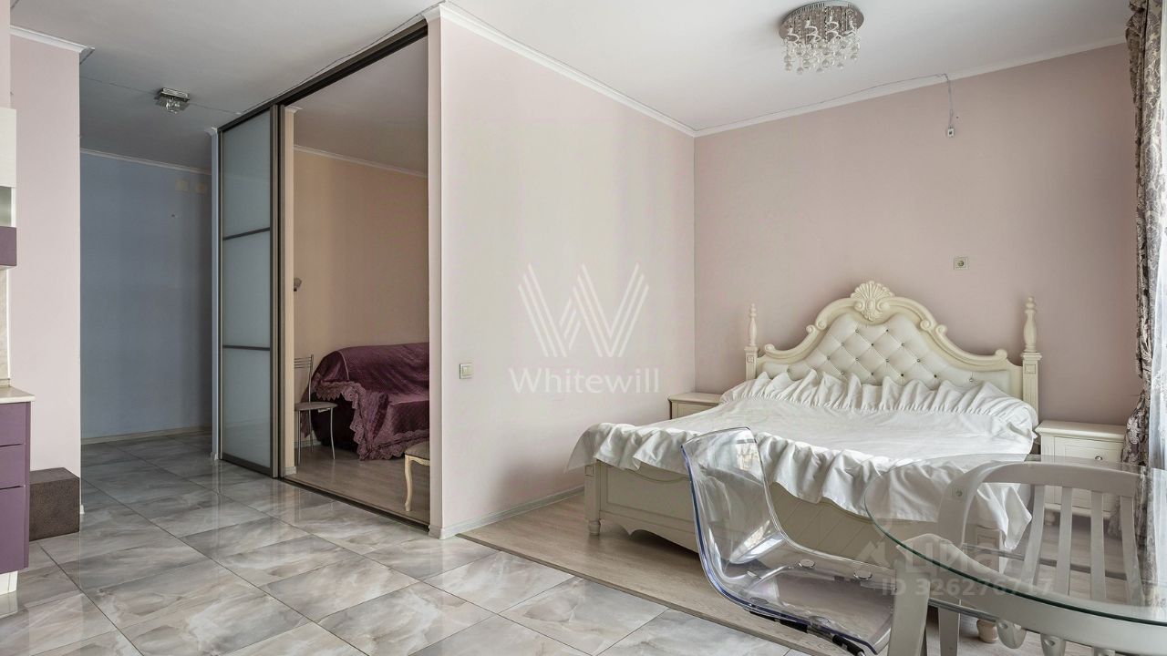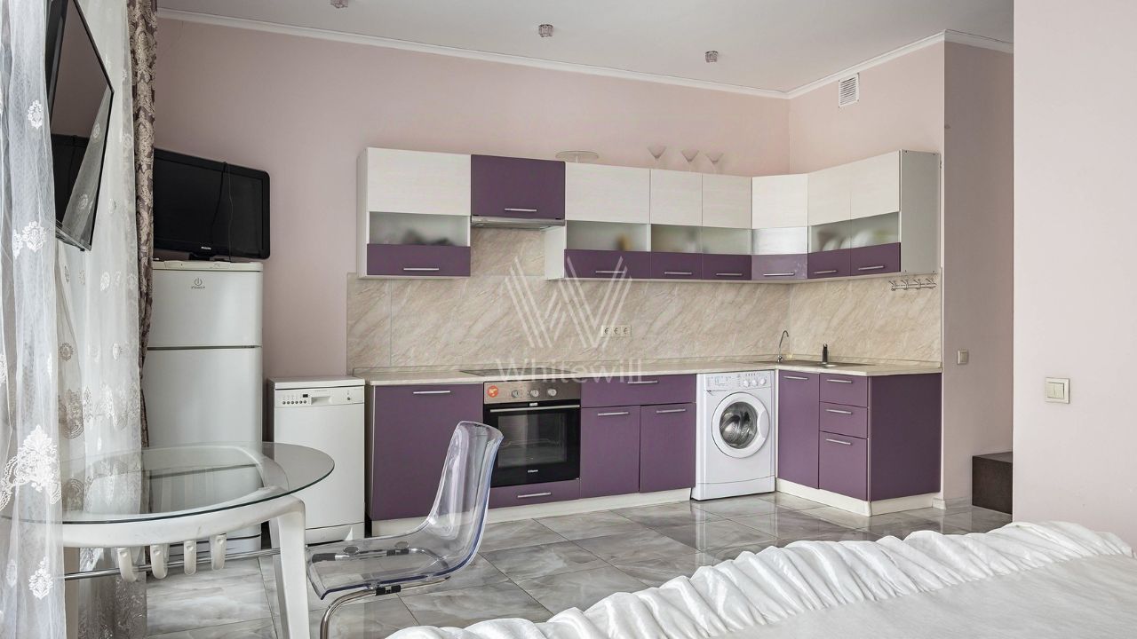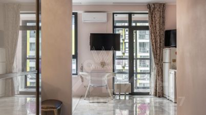 Апартаменты с одной спальней общей площадью 50 м² в комплексе "Фили Град". Апартамент с отделкой расположен на 11-м этаже. Установлена система индивидуального кондиционирования. Функциональная планировка включает кухню-гостиную со спальной зоной и выходом на балкон, спальню, ванную комнату, гардеробную и прихожую. Квартира полностью меблирована и укомплектована бытовой техникой. Из панорамных окон открываются виды на благоустроенную территорию комплекса.