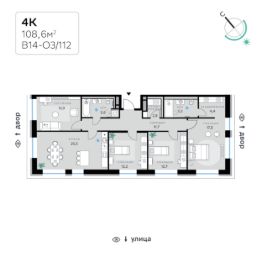 В продаже — четырехкомнатная квартира с чистовой отделкой, общей площадью 108,6 кв. м. Квартира расположена на восьмом этаже одинадцатиэтажного корпуса Оптимум в квартале В14 нового района СберСити, который строит Сбер.