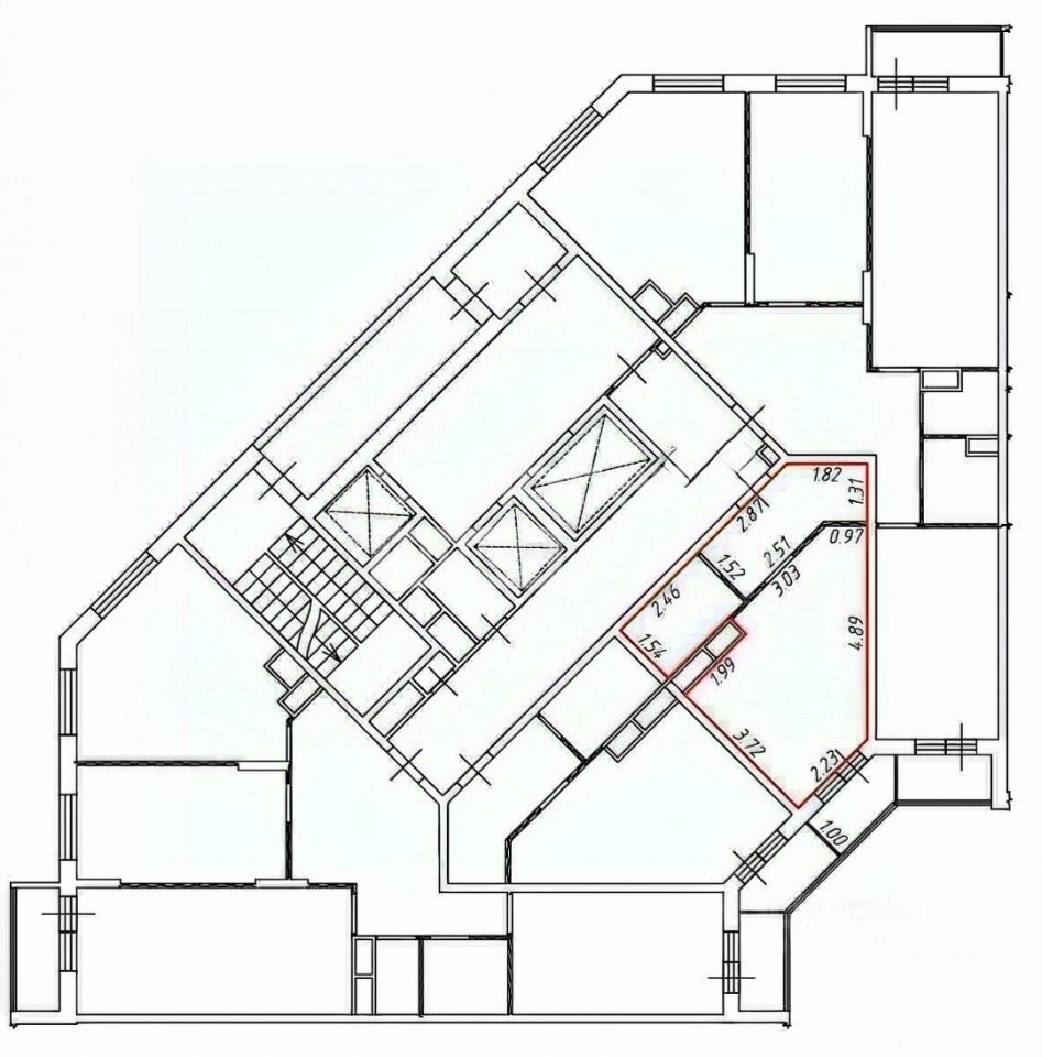 Свободная планировка-треугольник визуально просторнее обычных студий. Высокие потолки 3,1 м и панорамные окна во двор.