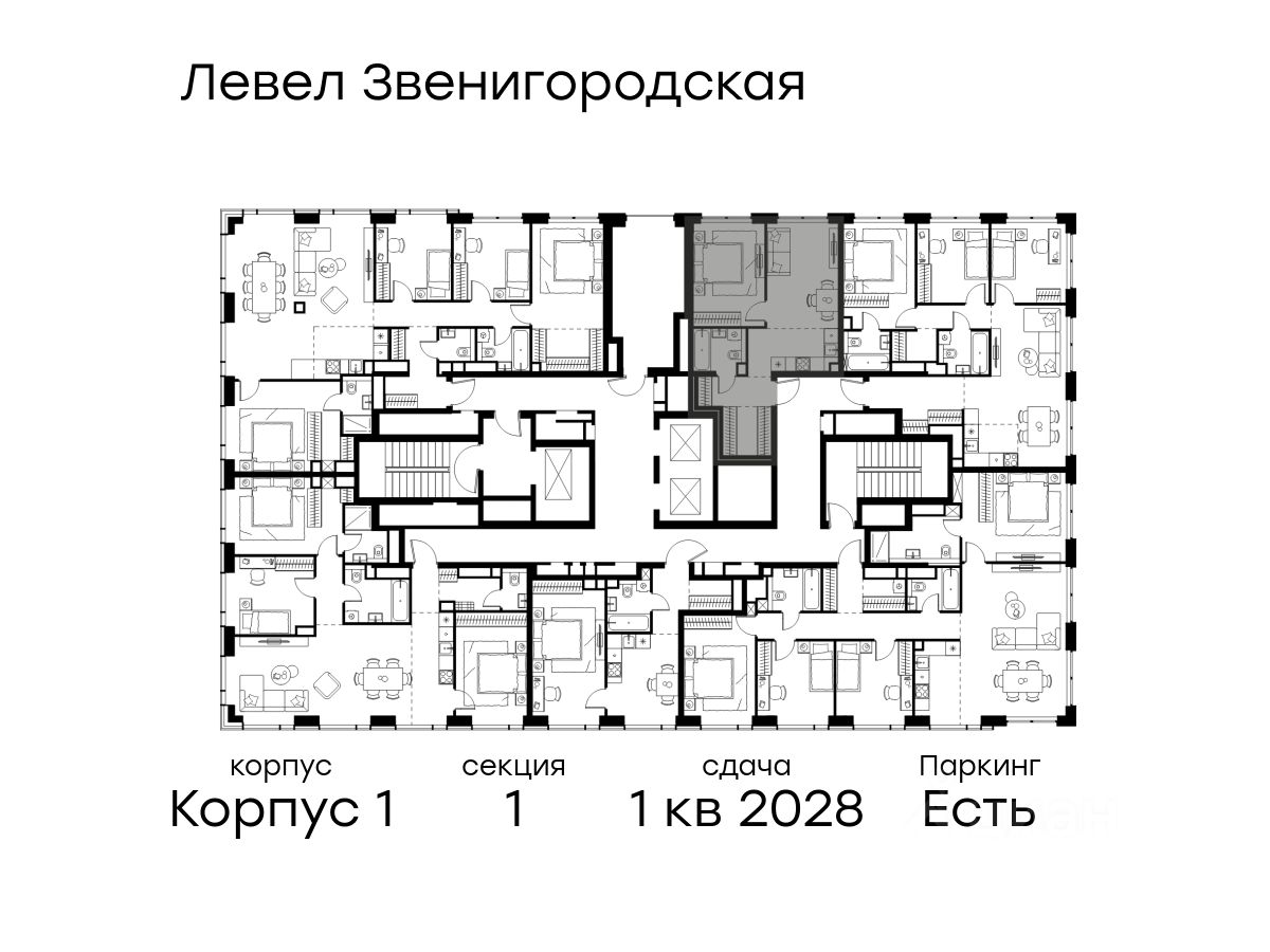 В жилом квартале продаётся 2-комнатная квартира площадью 44.70 кв.м white box. Квартира расположена на 44 этаже 48 этажного корпуса 1 в жилом комплексе комфорт класса Левел Звенигородская (компания Level Group/Левел групп).