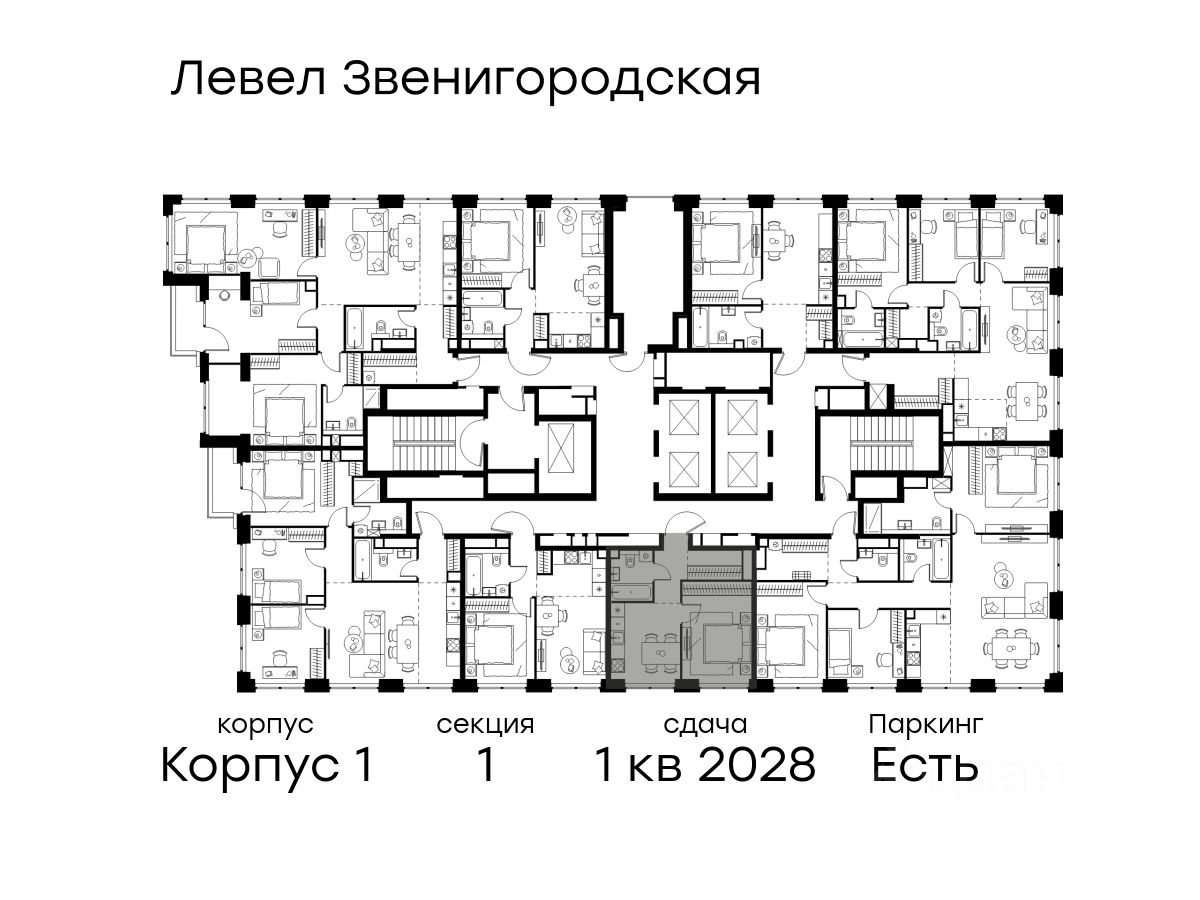 В жилом квартале продаётся 1-комнатная квартира площадью 33.10 кв.м white box. Квартира расположена на 19 этаже 48 этажного корпуса 1 в жилом комплексе комфорт класса Левел Звенигородская (компания Level Group/Левел групп).