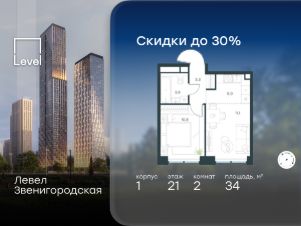 В жилом квартале продаётся 2-комнатная квартира площадью 34.00 кв.м white box. Квартира расположена на 21 этаже 48 этажного корпуса 1 в жилом комплексе комфорт класса Левел Звенигородская (компания Level Group/Левел групп).