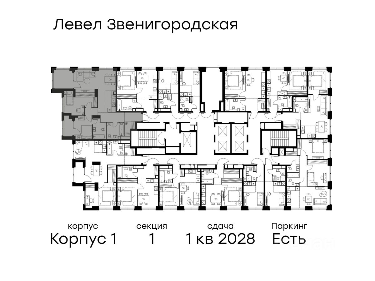 В жилом квартале продаётся 4-комнатная квартира площадью 89.90 кв.м white box. Квартира расположена на 12 этаже 48 этажного корпуса 1 в жилом комплексе комфорт класса Левел Звенигородская (компания Level Group/Левел групп).