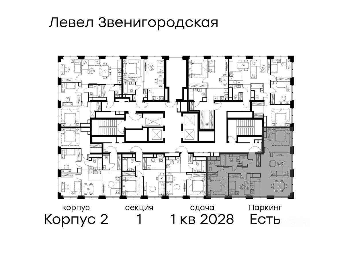В жилом квартале продаётся 4-комнатная квартира площадью 90.90 кв.м без отделки. Квартира расположена на 43 этаже 64 этажного корпуса 2 в жилом комплексе комфорт класса Левел Звенигородская (компания Level Group/Левел групп).