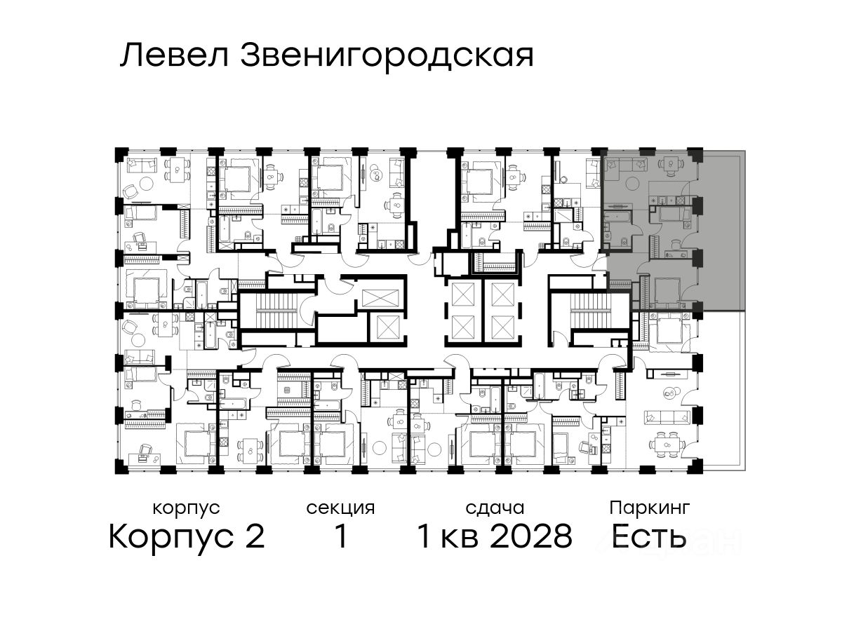 В жилом квартале продаётся 3-комнатная квартира площадью 64.80 кв.м без отделки. Квартира расположена на 22 этаже 64 этажного корпуса 2 в жилом комплексе комфорт класса Левел Звенигородская (компания Level Group/Левел групп).