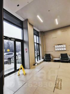 -Просторное лобби с панорамным остеклением, зоной отдыха и удобными креслами — место для встреч, ожидания или работы.
