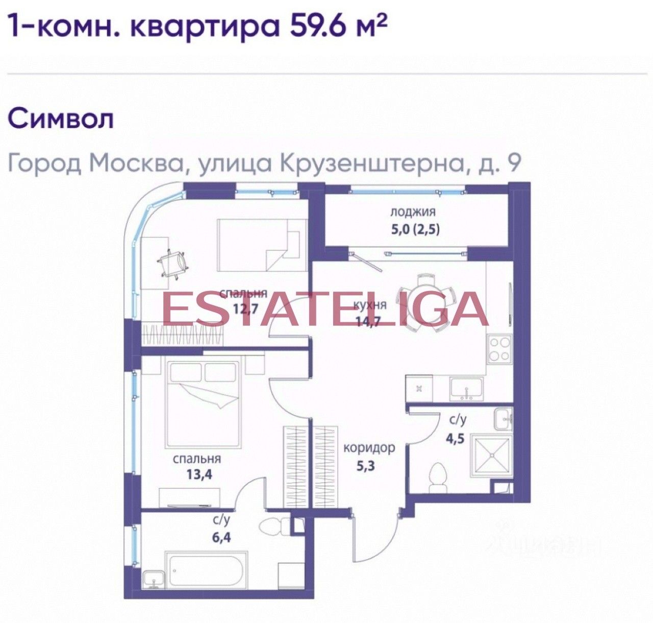 • Свободная планировка 59.6 м²