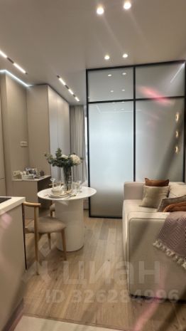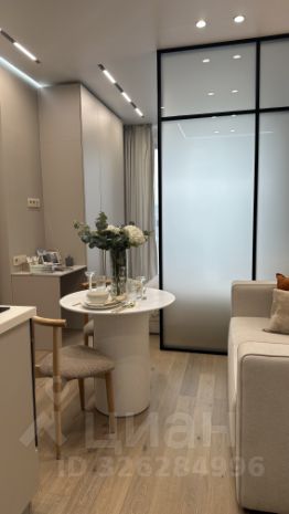 Студия, общая площадь: 26,6 кв.м., на 17 этаже. Высота потолков: 3,1 м. Окна: панорамные (высота - 2,7 м), обеспечивают обилие естественного света и открывают живописные виды на панораму Москвы.