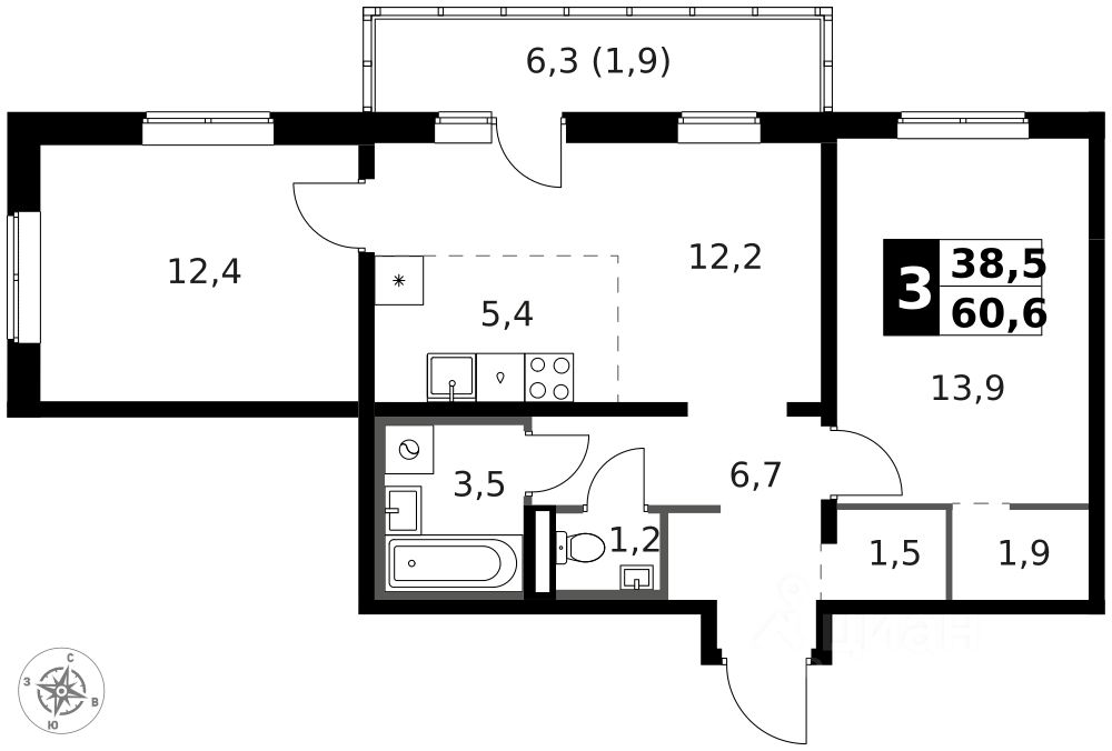 Продаётся 3-к квартира номер 241 общей площадью 61.6 кв.м. на 2-м этаже 18 этажного здания. Отделка Whitebox. Цена с учётом скидки.