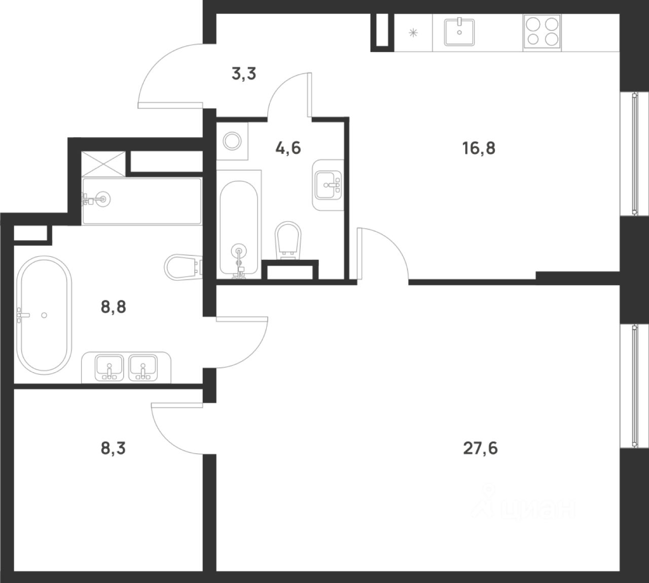 Квартира предлагается без отделки, что идеально подходит для воплощения собственного дизайнерского решения. Также доступна опция предчистовой отделки, стоимость которой включается в общую цену квартиры.