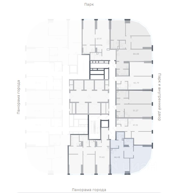 Высота потолков — 3,2 метра, большие окна в пол. В квартирах предусмотрены инженерные решения для акустического комфорта и чистый воздух благодаря близости парка и современным системам вентиляции.