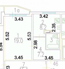 Общая площадь 37,6 м², из них 19 м² — жилая комната и 8 м² — удобная кухня.