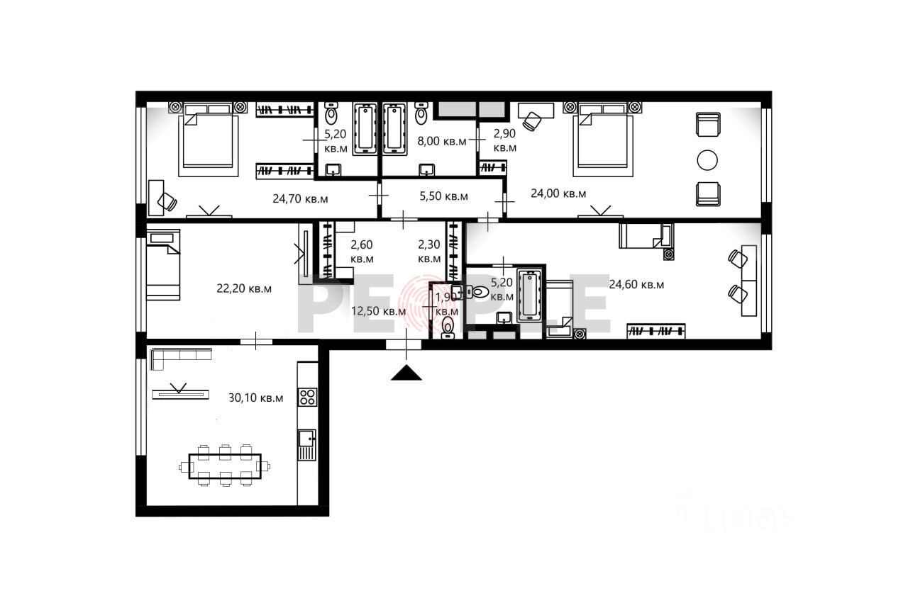 К продаже предлагается ПРОСТОРНАЯ СЕМЕЙНАЯ квартира с 4МЯ спальнями БЕЗ ОТДЕЛКИ, площадью 186.5 кв. м. в комплексе премиум-класса "Садовые кварталы".