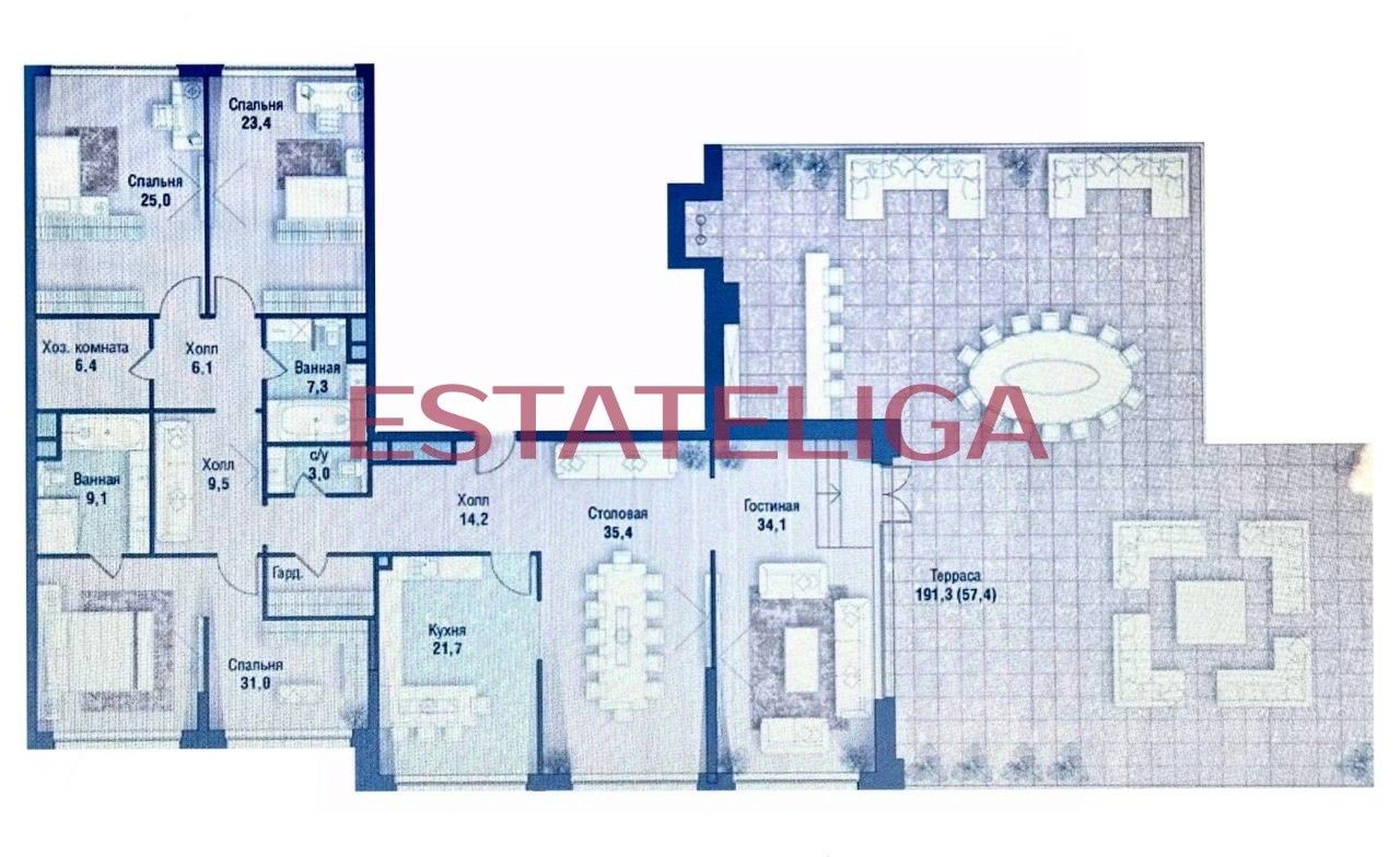 Id 57915. Продается 5-комнатная квартира 230 м2 с террасой 190 м² в ЖК Премиум класса "РЕКА"!