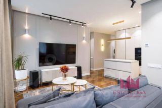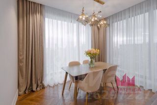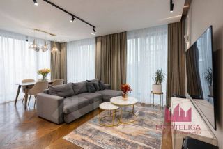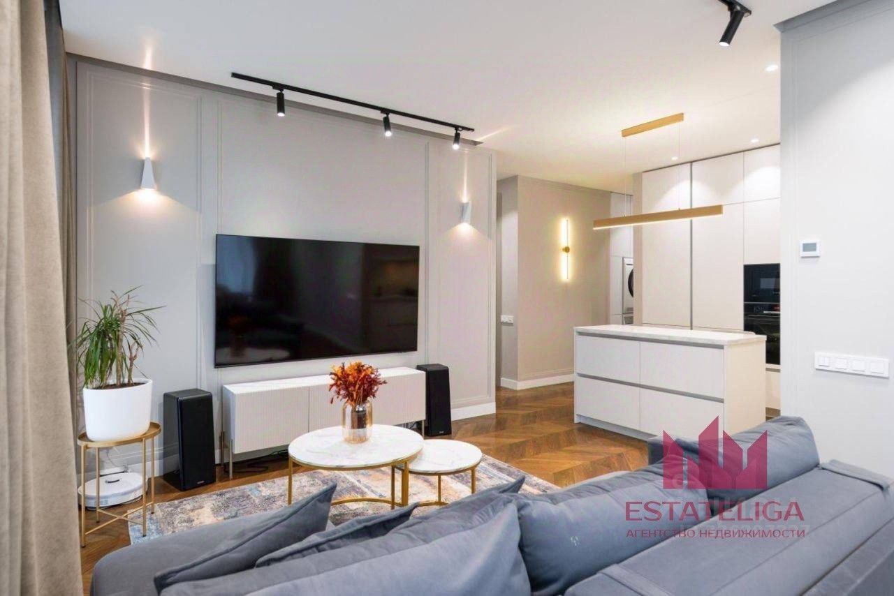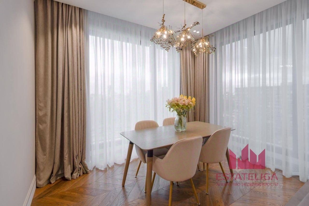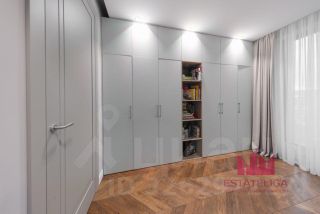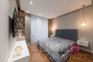 В квартире выполнен дорогой дизайнерский ремонт с использованием качественных материалов. Квартира оборудована всей необходимой встроенной бытовой техникой: посудомоечная и стиральная машины, варочная панель, духовка, вытяжка, холодильник. Установлены кондиционеры. Много мест для хранения.