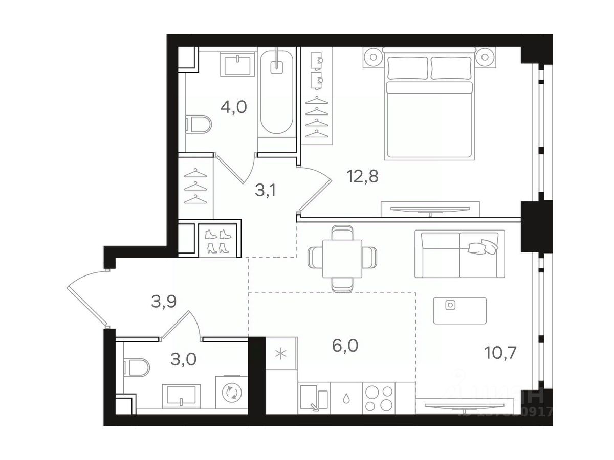 Общая площадь - 43.50