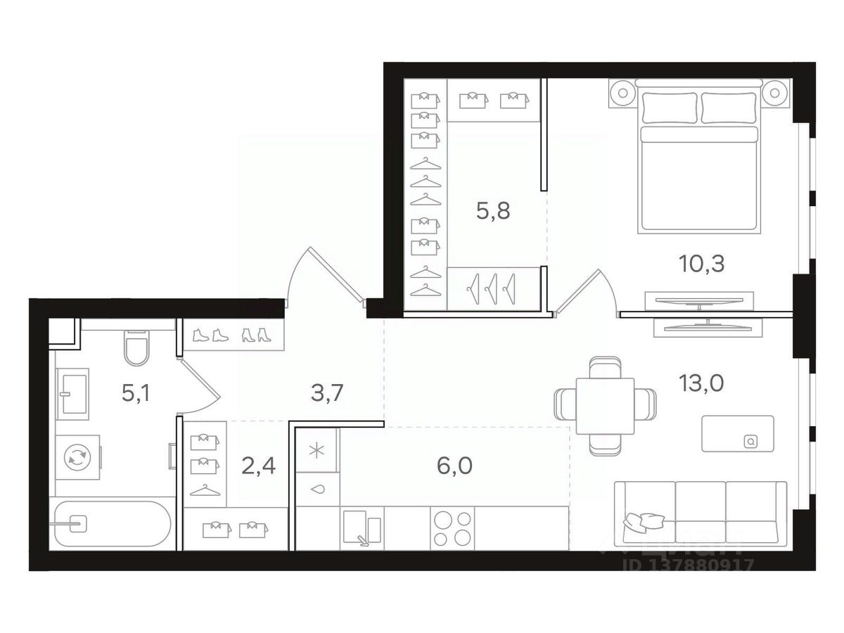 Общая площадь - 46.30
