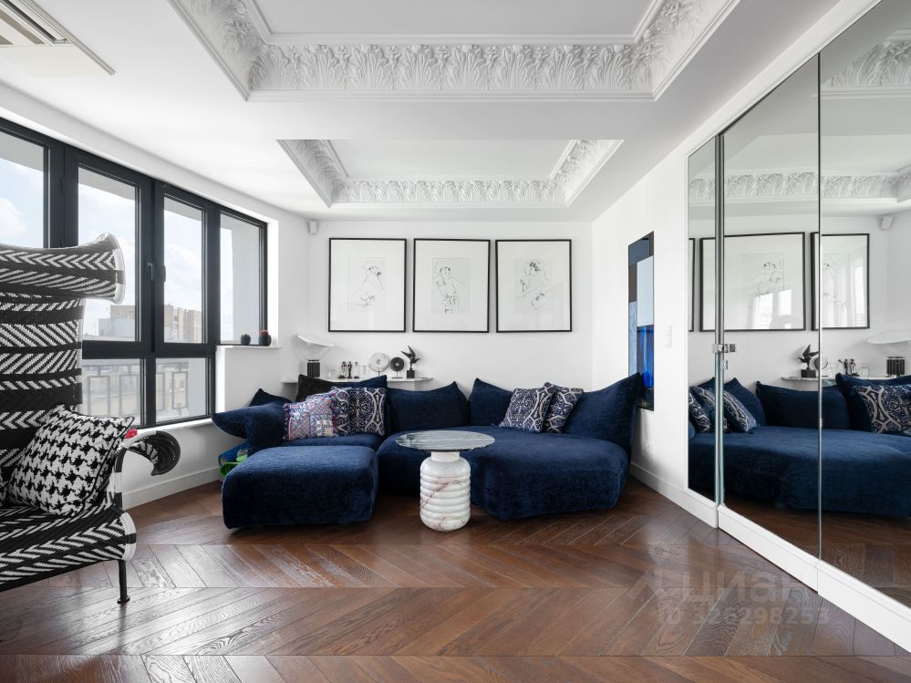 Квартира оборудована дорогостоящей бытовой техникой и мебелью. Столовая украшена сюжетным горельефом ручной работы, над которым скульпторы трудились три месяца. Стены покрывает декоративная штукатурка, созданная по рецептуре XVI века. Продуманные инженерные решения и система умный дом делают жизнь по-настоящему комфортной.