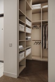 Эргономичная планировка: просторная кухня - гостиная, две спальни, где одна из них формата мастер - спальни, с просторным санузлом и гардеробной. Второй санузел с постирочной, гардеробная в прихожей. Потолки - 3,2 м высотой.