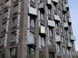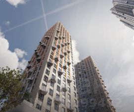 • Трехуровневая структура, где на верхнем ярусе вы увидите геометрические эркеры с панорамным остеклением, на среднем уровне расположены квартиры с окнами на 1-2 стороны, а на нижнем отделка австрийским клинкерным кирпичом.