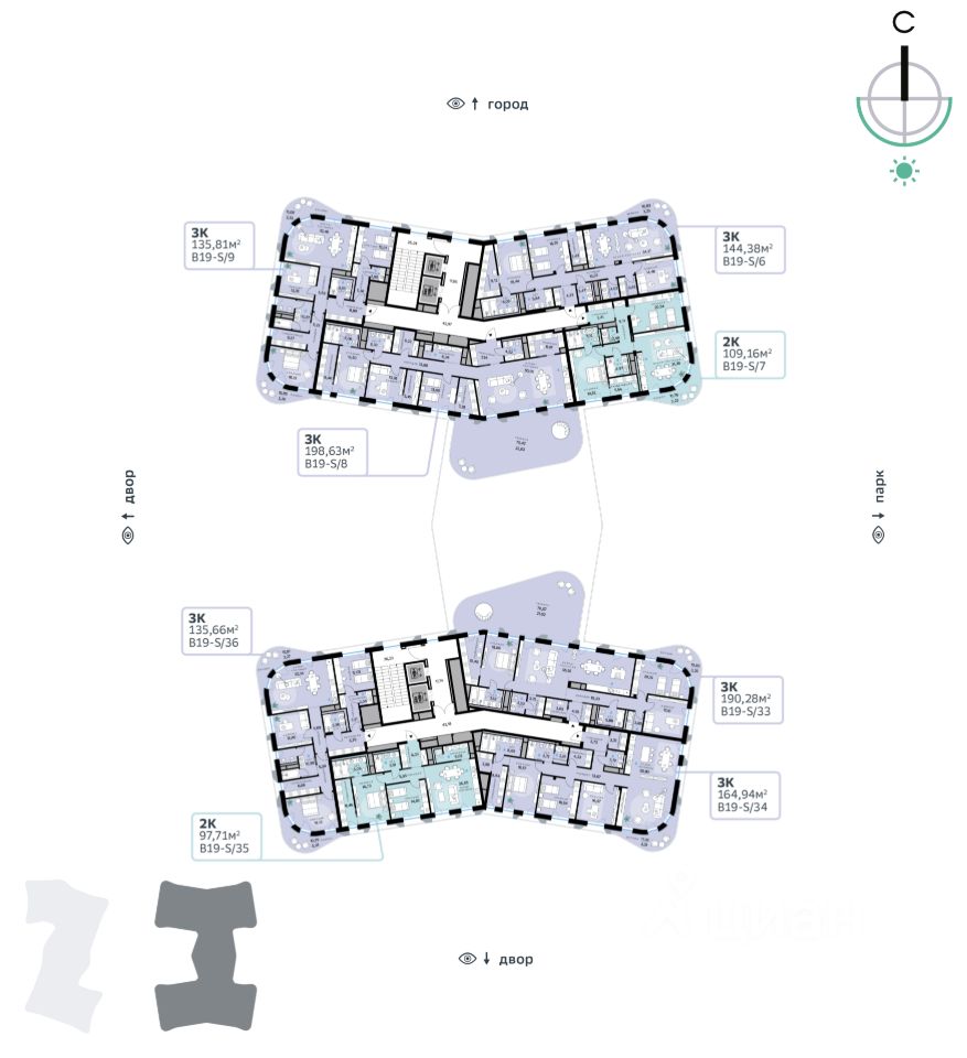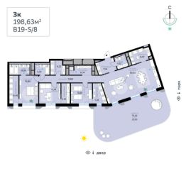 В продаже — трехкомнатная квартира, общей площадью 198,63 кв. м. Квартира расположена на втором этаже семиэтажной секции клубного дома класса Суперб в новом районе СберСити, который строит Сбер. Дом находится на первой береговой линии Москвы-реки.