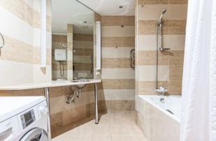Просторная прихожая. Совмещенный санузел, порядка 9 метров.