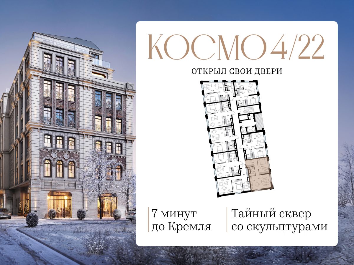 "Космо 4/22" находится всего в 7 минутах от Кремля с быстрым выездом на Садовое кольцо.