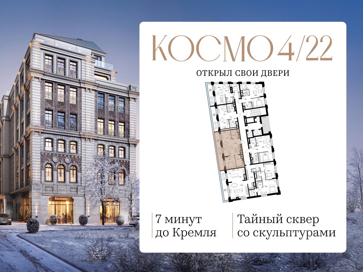 "Космо 4/22" находится всего в 7 минутах от Кремля с быстрым выездом на Садовое кольцо.
