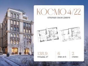 В клубном доме класса De Luxe "Космо 4/22", расположенном на острове Балчуг, напрямую от девелопера ГК "Галс-Девелопмент" представлена 2-комнатная квартира на 6 этаже общей площадью 138.90 м².