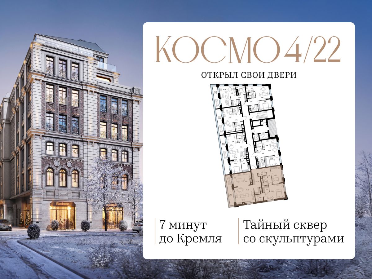 "Космо 4/22" находится всего в 7 минутах от Кремля с быстрым выездом на Садовое кольцо.