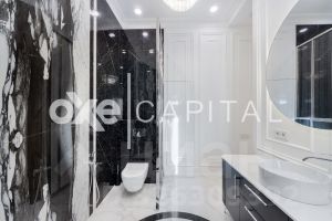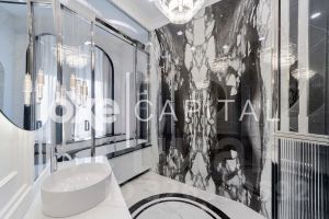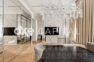 Отделка выполнена по дизайнерскому проекту в теплых оттенках с использованием высококачественных материалов. Квартира полностью меблирована и оснащена, готова к проживанию.