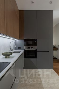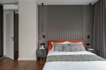 В квартире выполнен дизайнерский ремонт с применением высококачественных материалов, пол - инженерная доска, потолок - гипсокартон, стены - покраска, выполнена шумоизоляция стен по периметру квартиры. Мебель сделана на заказ, эмаль и шпон. Встроенная техника Bosch и Libherr.