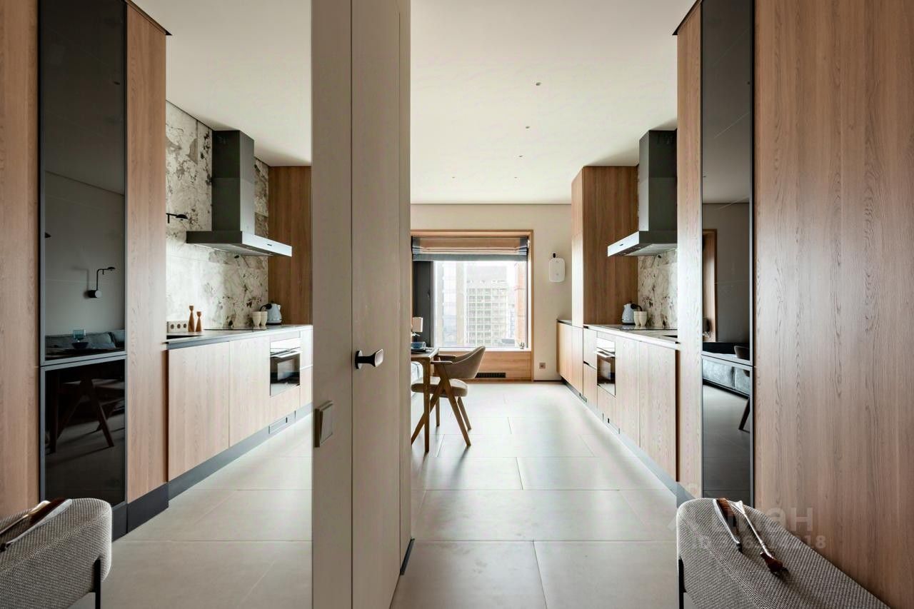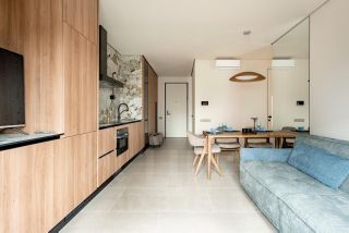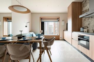 Отделка производилась с нулевого цикла, после полного демонтажа "прекрасной отделки white box" от застройщика с фотофиксацией этапов и гарантией произведенных работ. Дизайнер реализовал проект в спокойных тонах, перекликающийся с концепцией и цветовыми решениями ЖК.