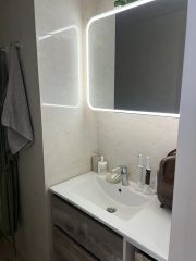 Ремонт в спокойных тонах. Санузел совмещенный (теплый пол, датчики протечек Нептун, фурнитура грое). Окна выходят во двор на запад. Не жарко летом, зимой не холодно ( батареи на минимуме) , мягкий закатный свет. Видно живописный мост.