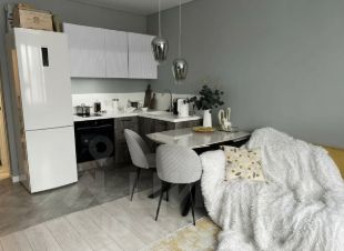 Однокомнатная квартира с удобной планировкой (узаконена). Общая площадь - 37 кв. м, жилая — 10 кв. м, кухня — 16.8 кв. м. Квартира на 9 этаже 32-этажного монолитного дома, построенного в 2017 году, потолки в 3 метра. Жили сами без животных (2020-2023), не сдавали. Ремонт делали под себя, не под сдачу.