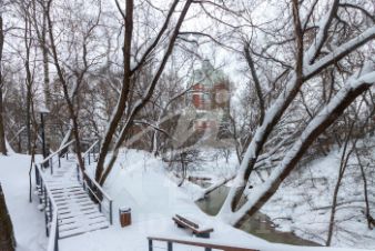 Территория, с пешеходными дорожками и своей набережной у реки Раменки для прогулок.
