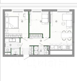 — гостиная с кухней,