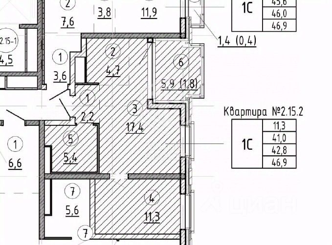 Общая площадь: 47 кв.м.