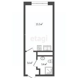 Планировка функциональна: выделена зона для сна и отдыха, предусмотрено достаточно места для организации полноценной кухни и рабочего пространства.