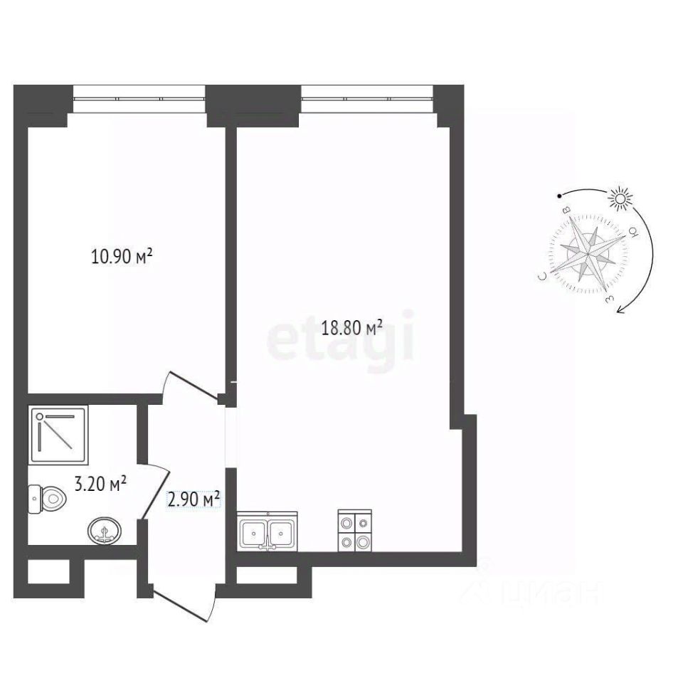 - Изолированная комната 10,9 м2.