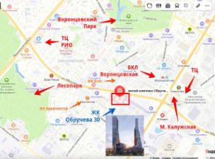 Жилой комплекс располагается в 5 минутах ходьбы до метро "Калужская" и 10 минутах до метро "Воронцовская". В непосредственной близости от ЖК Воронцовский парк, РУДН, МГУ 8 км, МГИМО 4 км.