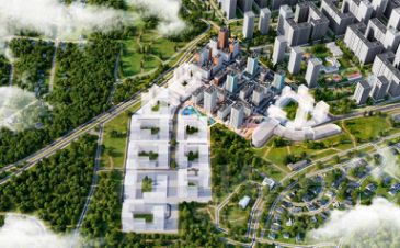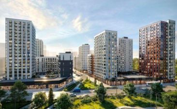 Это комплексная застройка монолитными домами переменной этажности: от 9 до 19 этажей. Дома отличает выразительная, динамическая пластика фасадов со смещением элементов отделки, сочетание контрастных тонов и большое количество остекления. В дизайнерских входных группах предусмотрены зона ожидания, санузел, лапомойки и места для хранения колясок.