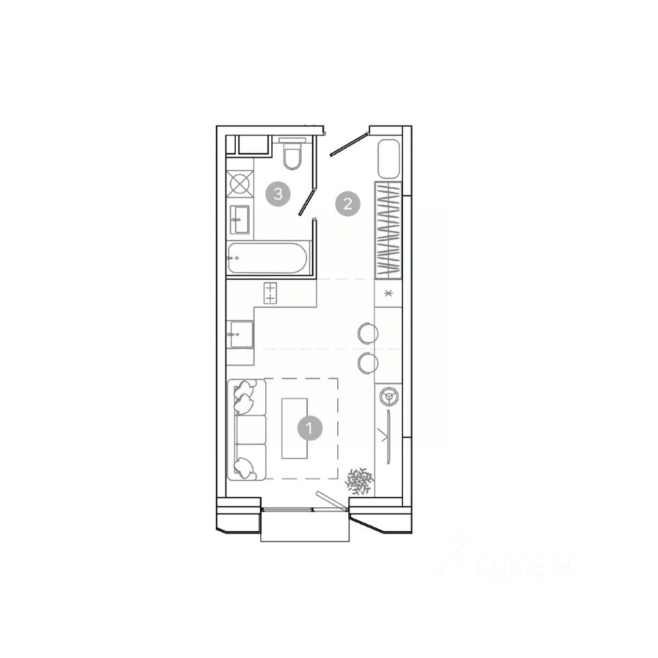 Продается студия площадью 28.4 кв.м. на 8-м этаже