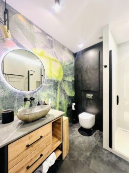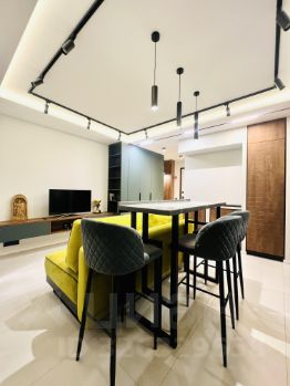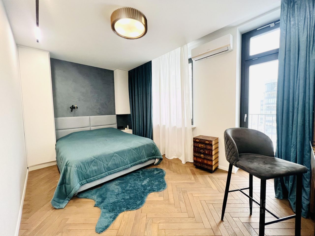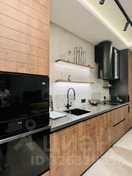 Выполнен дизайнерский ремонт, на полу керамогранит и паркет. Апартаменты полностью меблированы (мебель под заказ премиального качества), полная комплектация бытовой техникой: посудомоечная машина, духовой шкаф, варочная панель, стиральная машина, кондиционер, вытяжка, холодильник, диван, кровать.