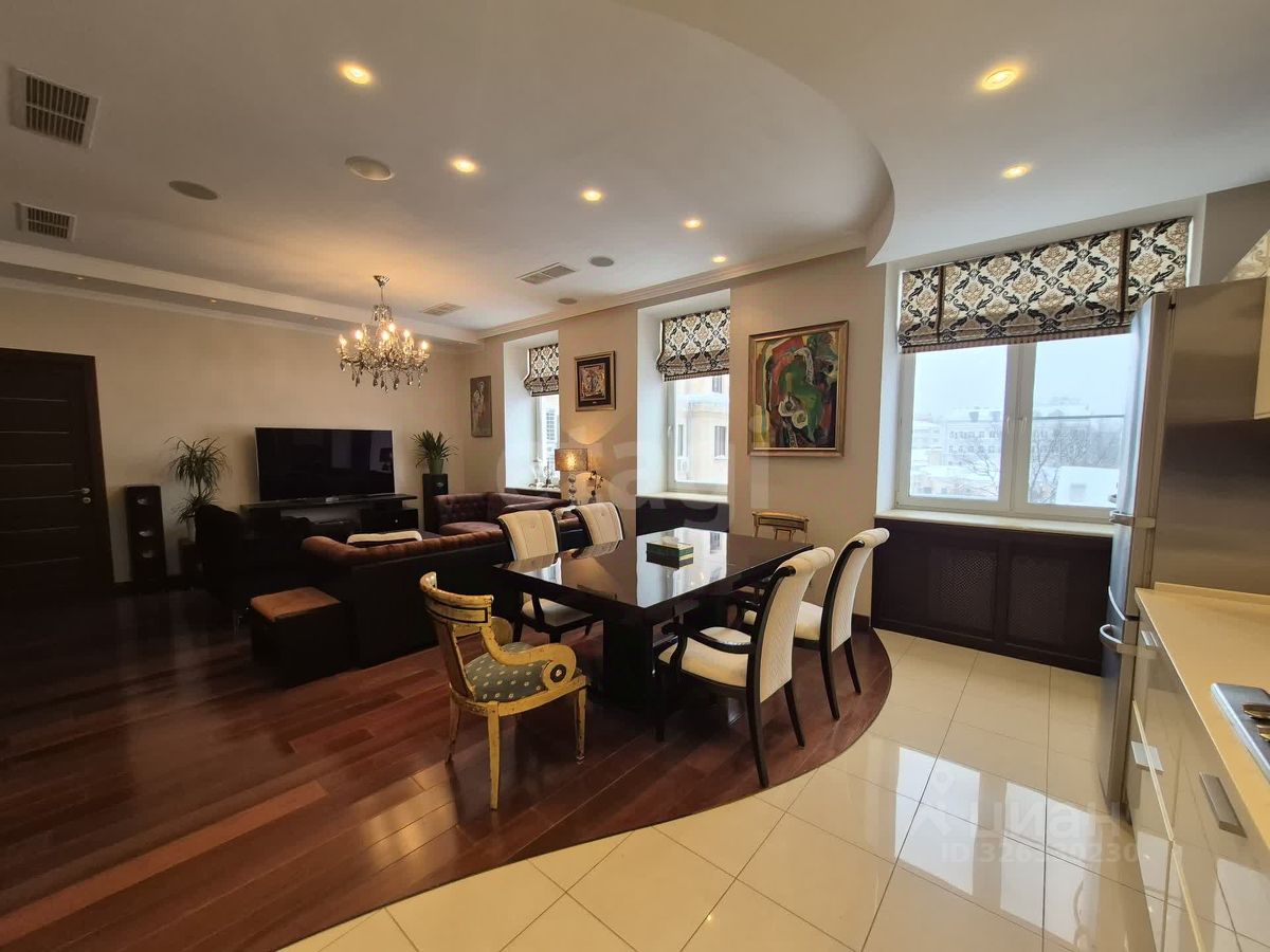Светлая 5-комнатная квартира площадью 168 м² с дизайнерским ремонтом в историческом центре Москвы. Кухня и гостиная объединены в единое пространство. Две ванные комнаты и гостевой санузел. Высокие потолки 3,4 м. Система приточно-вытяжной вентиляции, кондиционирование. Дом с двумя подъездами, один из них оборудован лифтом. Окна выходят на тихий закрытый двор и на улицу Большую Ордынка. Во дворе — закрытая парковка для жителей и небольшая детская площадка.